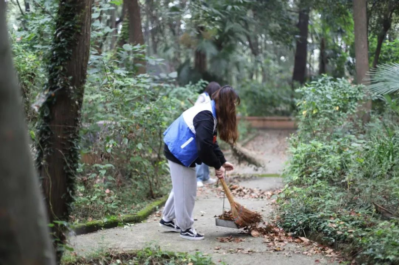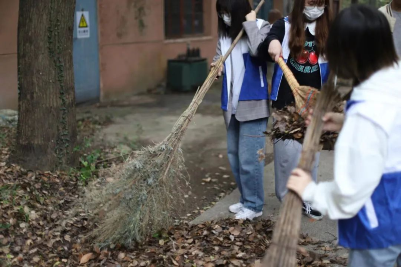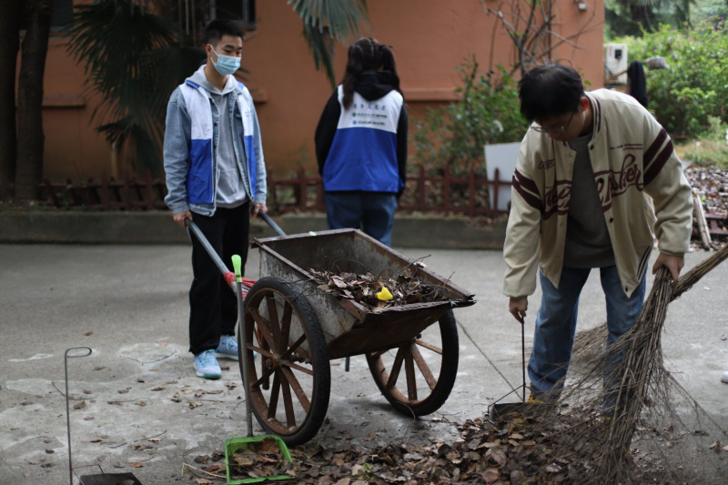 因疫情原因且为防疫安全问题考虑,此次活动将取消与老人的会见服务活动,活动主要以打扫庭院卫生、清理垃圾为主,在安养院毛婆婆等人的分工带领之下,大家很快融入了到了活动中来,大家各司其职,有的在清扫庭院的落叶,有的在推车,有的在擦拭落灰的座椅……原本沉寂的安养院,在多位志愿者的到来变得热闹、活跃起来,欢声笑语在庭院中回荡着,场面一度温馨。