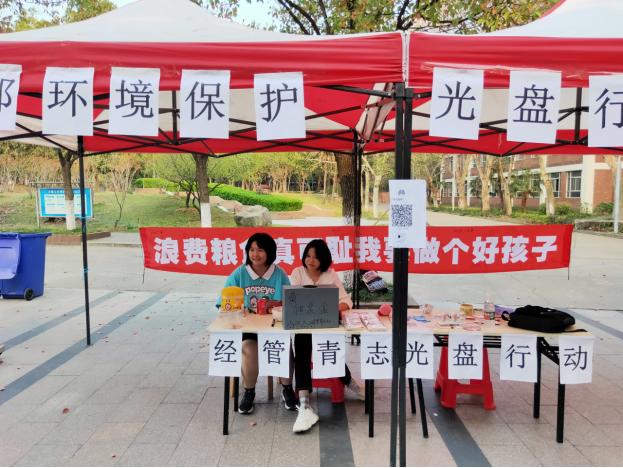 本次“光盘行动和环保行动”的主题活动由青年志愿者服务队负责宣传策划,其他部门协作,于3月14日南一教学楼前设立摊位。并且组建了QQ群,鼓励大家凭光盘照片在群内打卡,到摆摊点领取小礼品,横幅签名等有关活动,线上线下结合的方式,调动了同学们参加活动的积极性。让更多的城院学子加入到了本次的“雷锋月”活动中。青年志愿者服务队还和新闻宣传部制作环保主题板报并置备留言板,在大家抽奖的同时,还可以用便利贴写下一句环保宣传标语并粘贴在留言板上,将自己节约用水,共建生态文明的方法和大家共同分享。