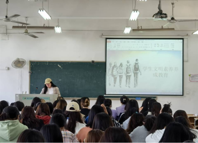(记者:陈晶晶) 大学生的文明素养体现在学生日常学习生活的言行举止的方方面面,文明素养的养成教育是每个大学生培养成长必不可少的重要一课,也是对当代大学生思想品德教育的进一步养成。4月10日下午5:00,外语学部在南5301教室开展了“大学生文明素养养成教育”主题讲座。本次讲座邀请了辅导员闫艺老师为大家讲解,21级全体同学参加了本次讲座。