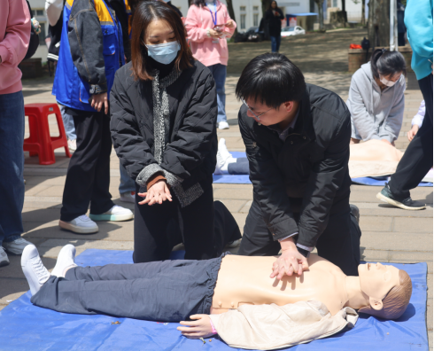 (通讯员:沈瑶) 为了普及急救知识,增强急救能力,医学部于4月1日8:30至I6:00在学校报亭旁开展现场教学宣传活动。李道老师和吴际老师现场为大家进行心肺复苏的实操讲解,和肘关节、踝关节扭伤包扎术的演示。