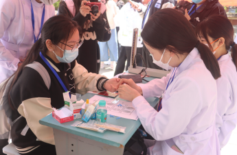 活动现场的学生认真听讲并踊跃参与现场实操。学生黄明说:“我看着气喘吁吁的他们仿佛不是在比赛,而是真的在救人一般一丝不苟。可想而知当他们真的遇到了需要急救的患者,一定会挺身而出,大喊一声:‘我是护士!让我来!’那一刻,他们也会为自己是一名白衣天使而感到自豪吧!”现场的学生积极参与,认真学习,纷纷为学习到了新的急救知识和技能表示感谢。到达现场的同学还学习了如何测量血压、血糖和血型。活动最后还进行了有奖竞猜,老师担任评委,学生们踊跃参加。