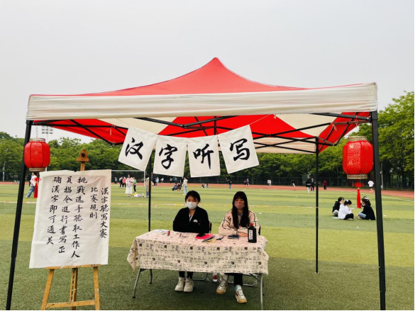 紧接着第二个市肆为汉字听写,同学们依据摊主的指令写出正确的汉字,此项游戏旨在唤起同学们书写汉字、保护汉字的意识,倡导爱汉字、爱汉语、爱中国文化的价值观。