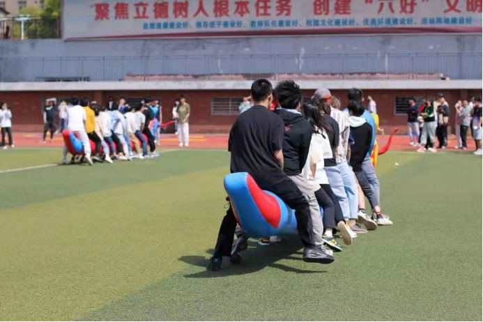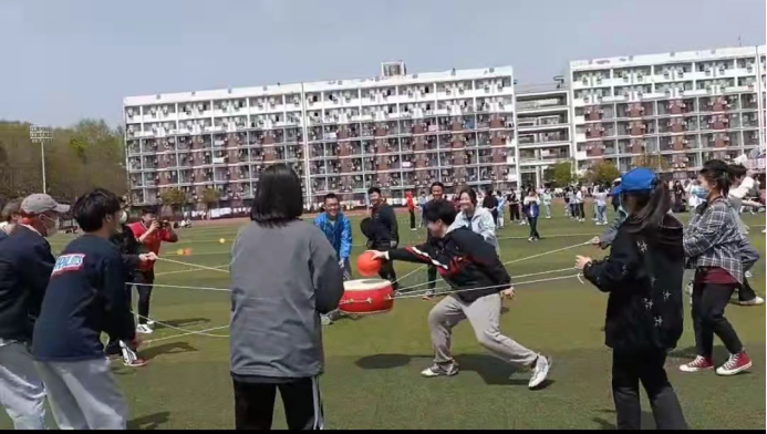 本次活动共有四个项目:运转乾坤、陆地龙舟、铁人三项,众星捧月。中午,阳光灿烂,参与活动的同学带着饱满的热情进行比赛的人员分配,策略的商议。在裁判老师的带领下,比赛正式开始,率先进行的是运作乾坤,参赛队员共同托起充气大球,冲向终点,充分体现了团队合作的精神,培养了同学们团队协作的能力,极具趣味性。各个比赛项目也在井然有序的进行,参加比赛的同学都喜笑颜开,玩的不可开交。妙趣横生的比赛项目引来了同学们的阵阵喝彩,让他们在参与中感受运动的快乐,向我们展示了青年学生的青春风采。无论比赛结果如何,趣味运动会让同学们收获快乐,真切的感受到校园生活的温馨快乐。