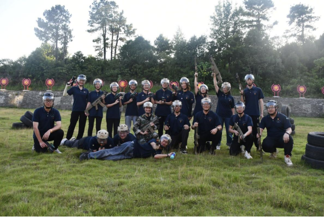 活动包括“队列训练”、“户外攀岩”、“极速60秒”、“合力搭塔”、“动力圈”及“真人CS”等。学员们以小组为单位,在教练的带领下有序参与活动,小组间相互比拼、相互竞技,现场气氛轻松活跃。