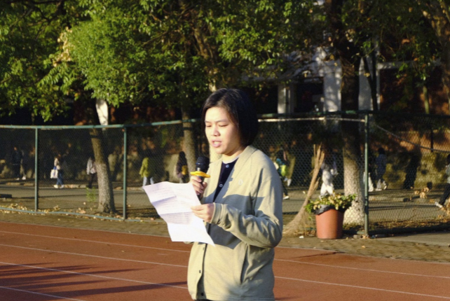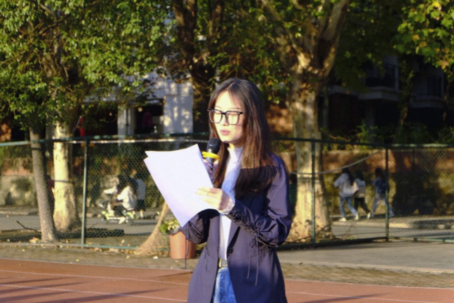 升旗仪式上,学生党员代表——何雨澄同学上台发言,她站在国旗下,用激昂的话语鼓舞着同学们。“天下兴亡,匹夫有责”,何雨澄同学提出青年都应怀有爱国的责任感,国家的希望在于青年,民族的未来在青年。未来属于青年,希望寄予青年。在奋斗中释放青春激情、追逐青春理想。演讲最后再次鼓舞同学们作为新时代的大学生,每个人都是满怀昂扬的斗志和奋进的激起。让我们不负昭华、不负时代、堪当重任的新一代!
