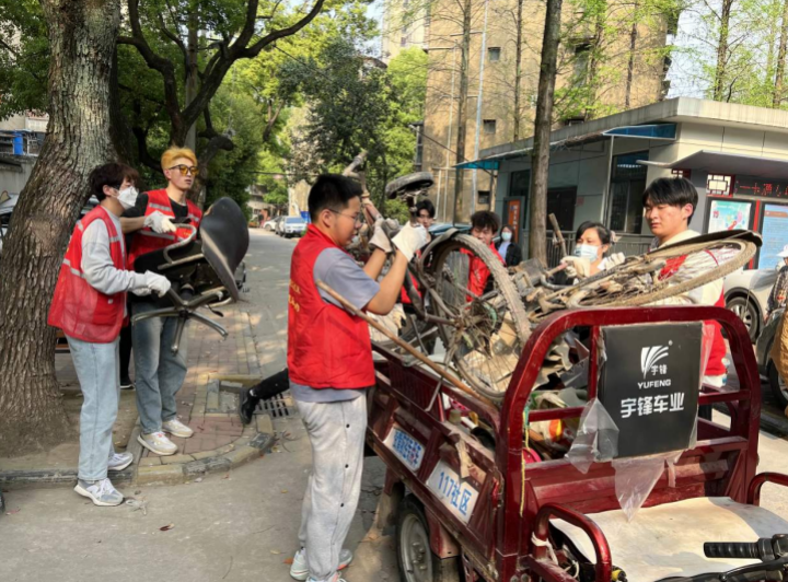 活动中,志愿者们身穿红马甲,手拿扫帚、垃圾袋、簸箕等工具,在划分好的劳动区域内重点对社区内楼栋里堆放的杂物进行清理,志愿者们不怕脏、不怕累,齐心协力搬动重物,收捡垃圾,使楼栋内面貌焕然一新,楼梯过道更加宽敞明亮,减少了可能存在的安全隐患。此外,志愿者们还帮助社区收捡归置废弃物品,将老旧的自行车、腐化的木板、坏掉的椅子等放入三轮车里进行回收处理。