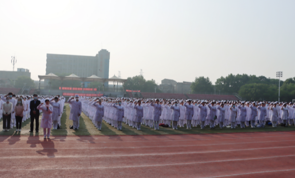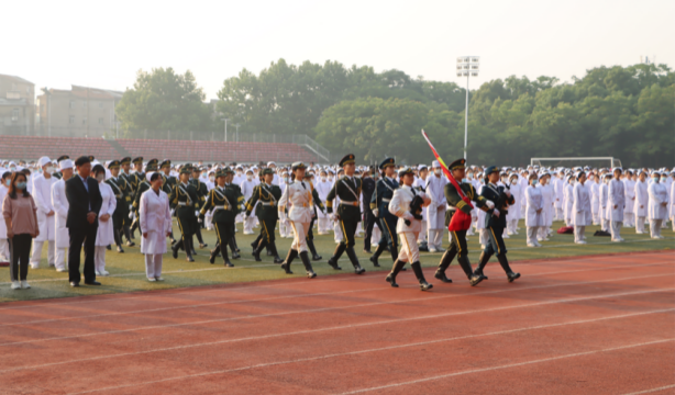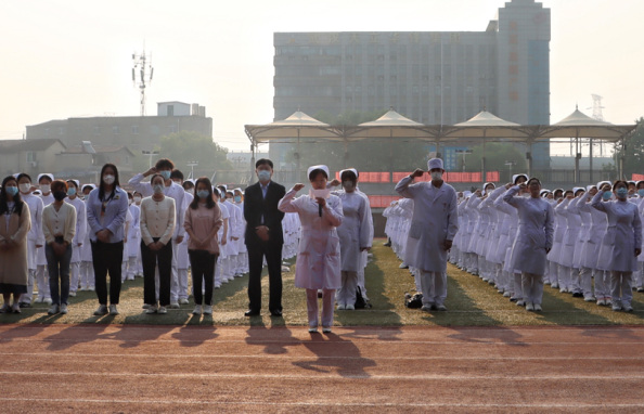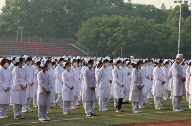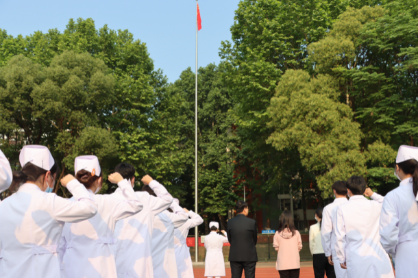 2023年5月12日武汉城市学院、武汉外语外事职业学院医学部全体师生在国旗下参加本次升旗仪式,护理专业着全套护士服参加。医学部党总支书记、学部主任罗健,医学部党总支副书记杜征帆,医学部全体辅导员及医学部全体在校生参加本次升旗仪式,护理专业何宇主持。