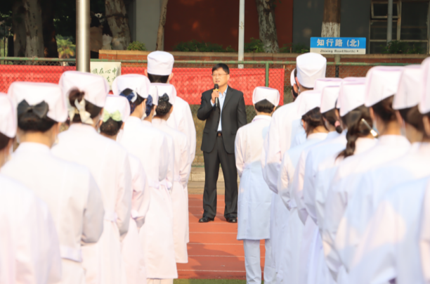 “各位老师,各位同学,大家上午好。今天是5月12日,也是国际第112个护士节,在这里祝各位老师和未来即将走护理岗位的同学们节日快乐。”何宇这样说