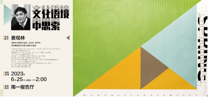 本次活动邀请到深圳市平面设计协会(SGDA) 秘书长、联禾嘉远设计负责人兼设计总监麦观林主讲,我校艺术与设计学部主任何方、艺术与设计学部副主任吴琼、艺术与设计学部教学副主任钱宇等老师出席本次活动。