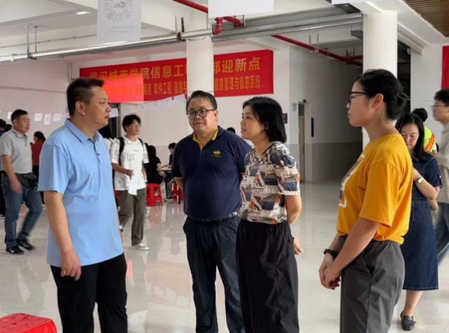 迎新工作正式开始的前一天,我校领导党委书记肖军、学工处处长严建莅临督促检查红安迎新场地的布置工作,带领学生迎新团队对于每一个细节都认真仔细检查。