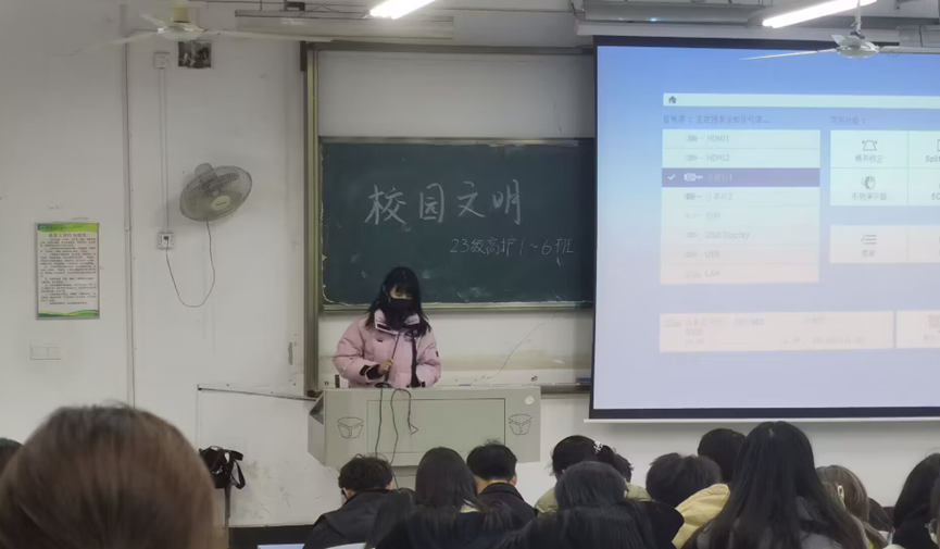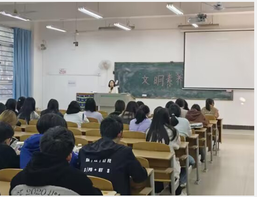 23级护理(专)1班—6班辅导员陶明明老师讲到:“大学生在大学需要学习的东西很多,文明素养不仅是大学生学习的必修课,而且是整个人生旅途中的必修课。文明素养也是人和动物的最大区别。一个具有良好的文明养的人,在交际活动中就会非常自信。因此,我们不管在上课,宿舍还是在日常的校园活动中都应该将文明素养时时刻刻践行。”