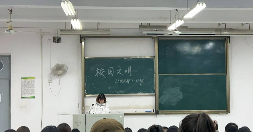 23级护理(专)13班—18班辅导员王月娟老师讲到:“中华民族拥有五千年的灿烂文明,自古素有“礼仪之邦”美誉。文明是素质的前提,没有了文明,素质就不能保证。大学生作为高素质群体,更应该成为文明发展方向的代表。温馨宁静、和谐优美的大学校园是每一位学子向往的圣地。”