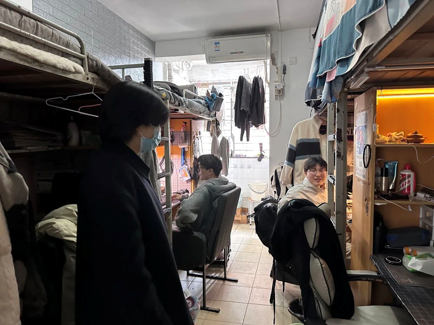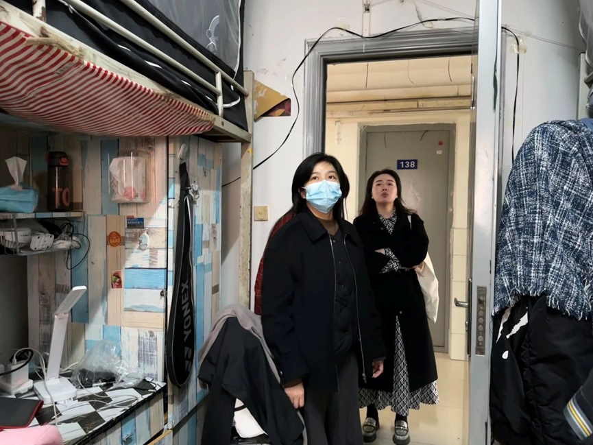 检查过程中,艺术与设计学部党支部副书记吴琼、团委书记王继与辅导员们仔细查看了每个宿舍的卫生状况、安全设施及学生的生活环境。她们强调了寝室卫生的重要性,要求学生们养成良好的卫生习惯,共同维护一个整洁、健康、安全的宿舍环境。同时,他们还就寝室安全用电、防火防盗等方面进行了细致的检查和指导,提醒学生们增强安全意识,预防安全事故的发生。