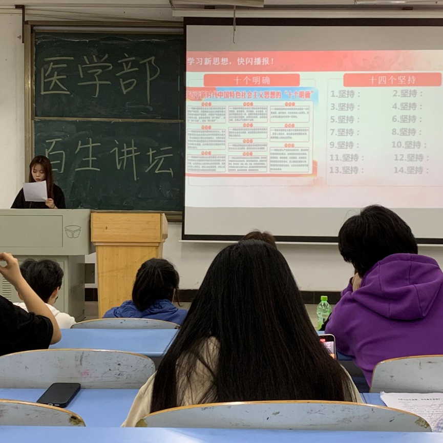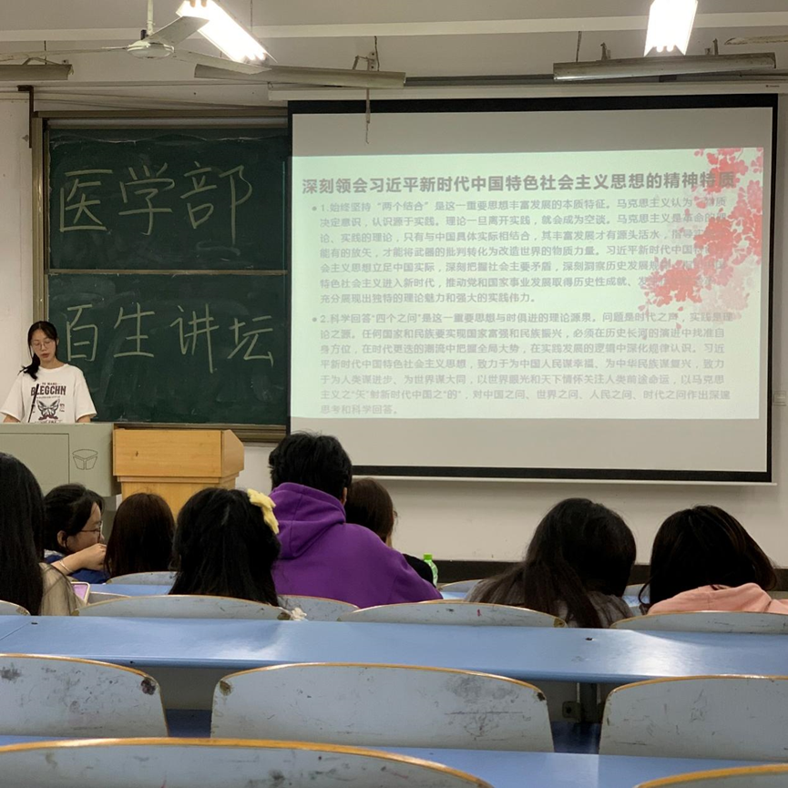 (通讯员:饶莹)2024年4月18日19:00医学部22级本科和23级专科学生在南6101教室举行了以“习近平新时代中国特色社会主义思想”为主题的百生讲坛初赛活动。本次初赛共有14个团支部,19名同学参加,旨在通过初赛的选拔,推荐最合适的主讲人参加学院百盛讲坛复赛。本次演讲围绕习近平新时代中国特色社会主义思想十个明确,十四个坚持和十三个方面的成就展开,从而引导同学们学思践悟。