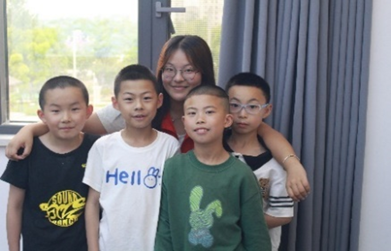 志愿者们和当天上课的孩子们合影