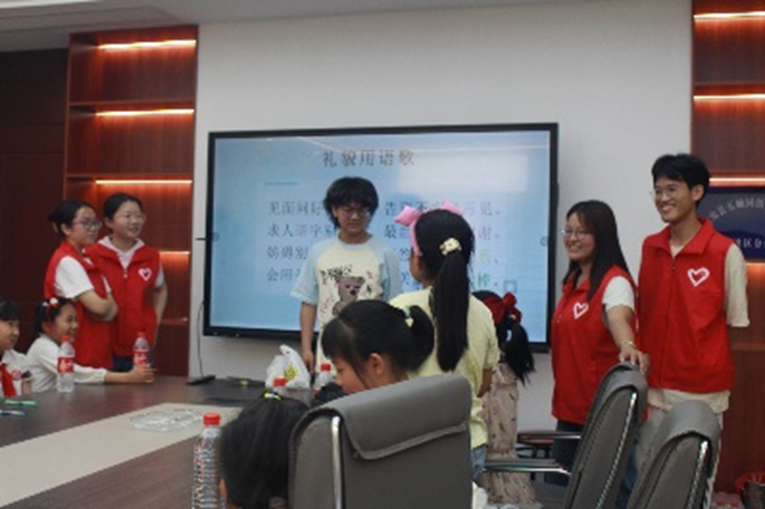 课堂上,小朋友们积极与收发言,脸上洋溢着欢快的笑容。他们用掌声表达了对来自武汉城市学院的大哥哥大姐姐们的热烈欢迎。在第一堂课上我们的志愿者们通过讲述视频加游戏的方式将一个个历史故事呈现在小朋友的眼前,通过一个个鲜活的事例加强小朋友们爱国主义教育。小朋友们纷纷表示,要铭记历史,好好学习,报效祖国!第二节课的主题是“文明礼貌”,志愿者教导孩子们学会使用礼貌用语,尊重长辈,在朋友困难沮丧时给予帮助,引导小朋友们用一双善于发现美的眼睛 ,关注周围同学的闪光点。