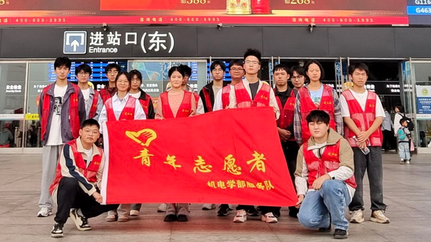 (通讯员 刘子涵)2024年10月6日,国庆佳节,举国共庆,城市处处洋溢着欢乐祥和的气氛。上午八点由机电工程学部青年志愿者服务中心组织的机电学子已在武汉站集合。本次志愿活动旨在通过志愿者的实际行动,为乘客提供更加便捷、贴心的帮助。