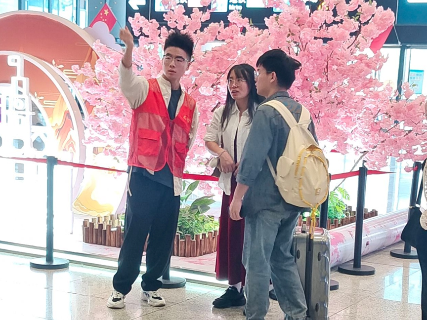 在活动中,来自23级机械一班志愿者邓青青同学认为,在经过给迷茫的乘客指明方向和耐心解答乘客的疑问后,能够提升自我的表达能力,并且能够学习及时解决突发事件的能力,从而感受到了成就感和对乘客表示感谢的温暖。