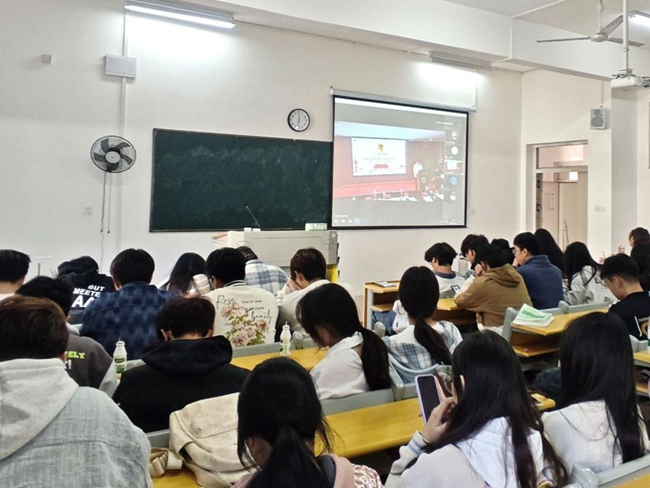 信息工程学部分团委书记袁滢珍老师致辞。袁老师高度肯定过去一年分团委学生组织、学生会的工作成绩,尤其是在丰富校园文化生活、提升学术研究氛围以及增强学生团体凝聚力方面的突出贡献。强调学生组织应以服务同学、提高学部学生综合素质为己任。同时,她也对新一届学生组织提出了更高的工作要求,打造一支胸怀理想、心系同学、品学兼优、作风扎实的工作服务队伍。