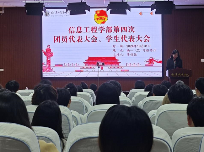 (通讯员 邱似兰 马志才)砥砺奋进新时代,乘风破浪启新程。为充分调动我学部团学工作的积极性,大力加强学生干部队伍建设,武汉城市学院信息工程学部于2024年10月31日在南一(2)号报告厅正式召开学部第四次团员代表大会、第四次学生代表大会,参加此次会议的有信息工程学部党总支副书记、学部副主任王鹏老师、信息工程学部分团委书记袁滢珍老师、信息工程学部综合科副科长李军老师、以及学部全体辅导员老师和165名学生代表。红安校区分会场的全体代表于J222教室参加线上会议。让我们以昂扬的斗志、饱满的热情在未来的征途上披荆斩棘,共同描绘新时代信息工程学部团学工作的宏伟蓝图。