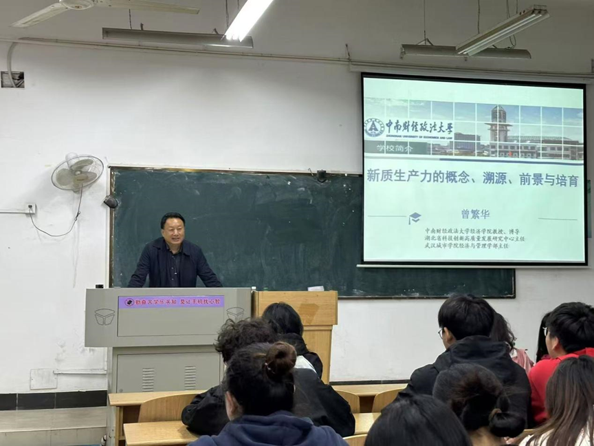 经管分团委、学生会新闻宣传部讯(记者:唐金凤)2024年11月5日下午,一场以新质生产力为主题的学者讲堂于南四4205精彩开讲。本次讲座由经管学部曾繁华主任主讲,吸引了学部内众多师生踊跃参与。