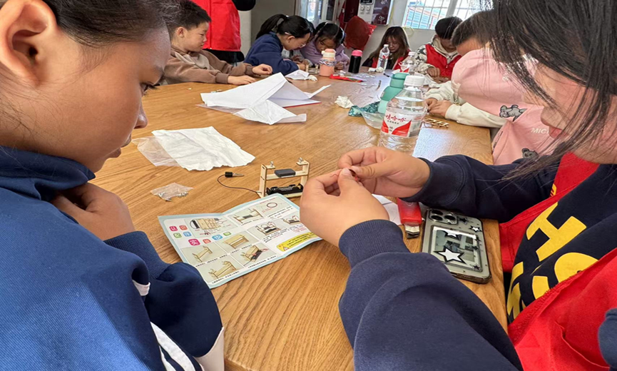 最后,为小朋友们进行科学小实验讲解。这次试验做的是简易电动机,做实验能够激发小朋友们的好奇心与兴趣,培养小朋友们的动手能力,加深对知识的理解,培养科学素养……这次实验的主要目的是希望小朋友们在试验过程中,能通过亲手搭建实验装置还有操作实验器材来锻炼手部的精细动作和操作能力。在操作过程中志愿者时刻关注小朋友们的动作,在需要用到危险工具时他们会在一旁辅助小朋友以保证小朋友们的人身安全和实验的顺利进行。