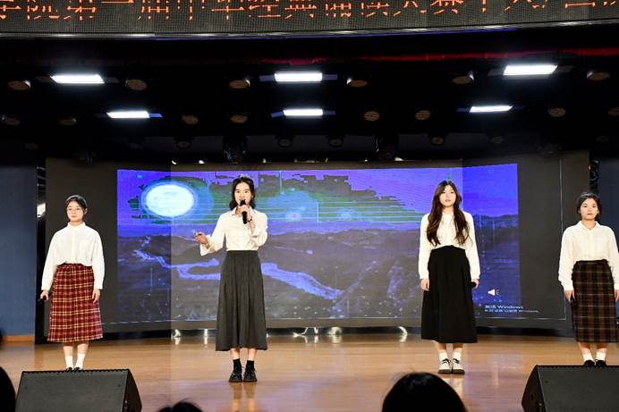 12月13日,个人、团队赛道决赛率先拉开帷幕。经过学部初评、学校复赛,孟纭竹团队、王萍团队、梁思怡团队、杨学达团队、刘溢团队、谢天浩团队、李如兰团队七支团队以及聂雨欣、张艺馨、汤瑾荧三位个人选手入围决赛。各位选手、每支团队声情并茂地朗诵着一首首经典诗词。他们用真挚的情感、抑扬顿挫的语调,将诗词中的意境和情感展现得淋漓尽致。从抒发了对楚国命运的忧虑和不与世俗同流合污的决心的《离骚》,到展现英雄精神的不朽、激励人们铭记历史的《不朽》,从表达对青春的感悟和珍惜的《青春》,到赞扬胡杨坚贞不屈的精神、鼓励人们永不放弃的《生如胡杨》,再到表明对祖国深沉而炽热的《我深深爱恋的祖国》等作品,无论是激昂豪迈还是柔情似水,每一位选手都用独特的方式诠释了诗词的魅力,赢得了现场观众的阵阵掌声。