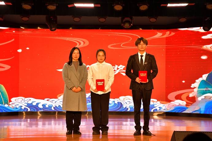 校团委书记、学工处副处长王薇薇为一等奖获得者颁奖