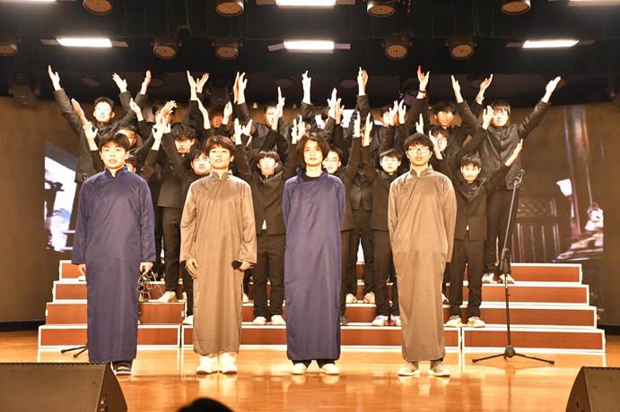 12月20日,班级赛决赛接踵而至。各班同学团结协作,通过集体诵读的形式展现经典魅力。整齐的着装、默契的配合、抑扬顿挫的声音,彰显出班级的凝聚力与对经典文化的热爱,他们或激昂高歌,或浅吟低诵,配合着古风音乐与优雅手势,仿佛带人穿越时空,领略古人风采,为观众带来一场场震撼心灵的视听盛宴。