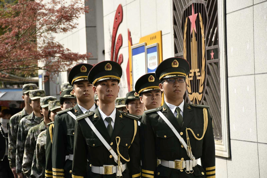 国旗班整理仪容严阵以待