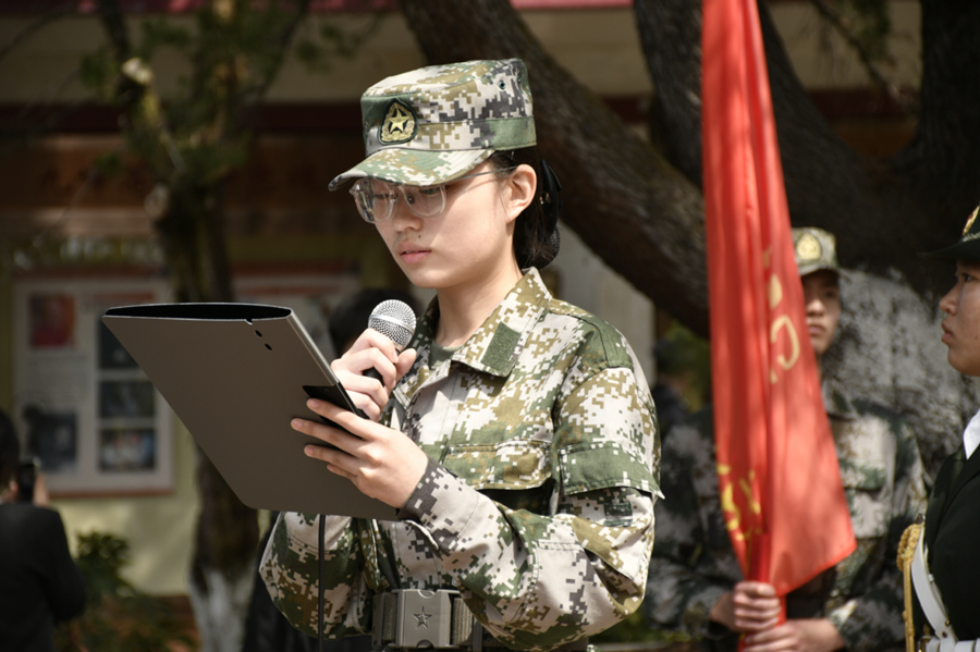 校国旗班成员医学部24级高护13班陈迪萱发言