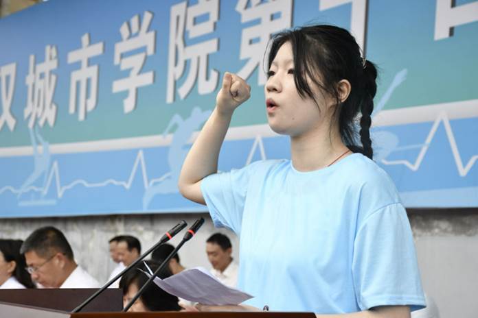 裁判员代表冉桢郑重承诺,全体裁判员将始终秉持公平、公正、公开的原则,以火眼金睛捕捉赛场上的每一个细节,以精准无误的判罚尺度守护竞技的尊严。无论是田径赛道上的毫秒之争,还是球类赛场的激烈对抗,都将以严谨的态度、专业的标准确保比赛结果真实可靠。他们将以高效的执裁效率和严明的纪律作风,为赛事平稳运行筑牢坚实屏障,全力打造风清气正的竞技环境,让每一位运动员都能在公平的舞台上尽情挥洒汗水、绽放青春光芒。