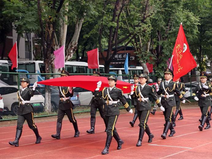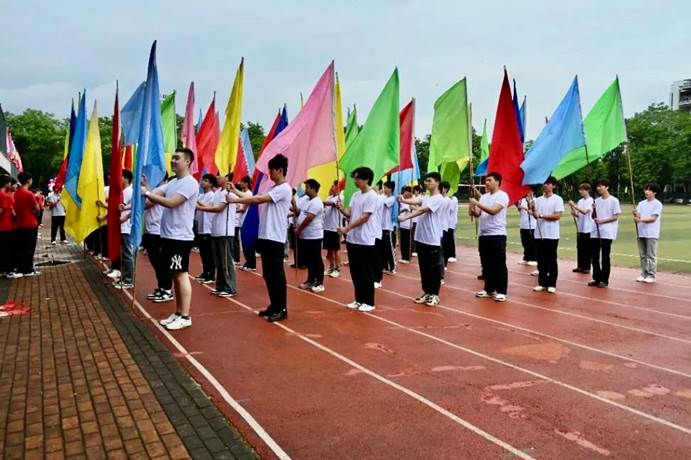 开幕式伊始,备受瞩目的方阵入场仪式在激昂的旋律中拉开帷幕。伴随着铿锵有力的《运动员进行曲》,国旗班作为学校第一班,以挺拔的身姿、坚毅的目光率先亮相。他们步伐整齐划一,铿锵有力的脚步声回荡在田径场上,护卫着鲜艳的五星红旗稳步前行,每一个动作都彰显着对国旗的崇敬,将坚韧不屈、昂扬向上的精神风貌展现得淋漓尽致,点燃全场师生的爱国热情与运动激情。