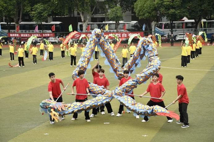 彩龙翻腾、雄狮矫健。金光灿灿的长龙在表演者手中上下翻飞,龙身如波浪涌动,气势十足;红鬃狮子活灵活现,时而昂首腾跃,时而憨态可掬,一举一动尽显威风。灵动的小龙,在表演者手中快速穿梭、翻转腾挪,动作轻盈又俏皮。大小“神龙”与醒狮相映成趣,传统文化的魅力与青春的活力激情碰撞,现场气氛瞬间被点燃,欢呼声、掌声此起彼伏。