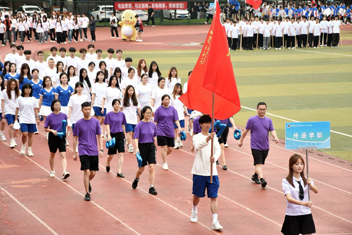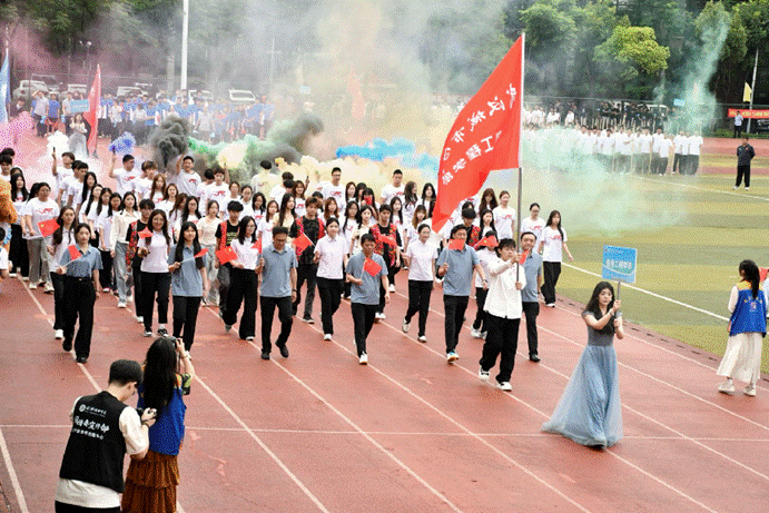 学校校长陈建勋,党委书记肖军,副校长赵光红,以及各职能部门、各学部领导悉数到场,与全体师生齐聚田径场,共享开幕盛举。开幕式由副校长、党委副书记、纪委书记李相朋主持,他以铿锵有力的话语,为这场凝聚青春力量、展现竞技风采的盛会拉开了序幕。