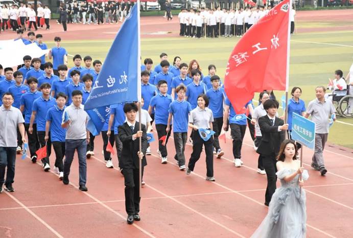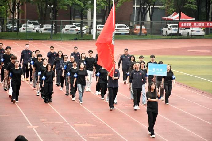 机电工程学部方阵眼神如炬、口号震天。作为学校工科领域的主力军,机电工程学部始终秉持“精工铸魂,智造未来”的育人理念。课堂上,他们钻研机械原理、攻克技术难题;赛场上,他们化身运动健将,将机械装配中的严谨细致转化为田径场上的沉稳专注。这群眼里闪烁着金属光泽的学子,以钢铁般的意志和火焰般的激情,在跑道上书写属于机电人的热血篇章,用拼搏与汗水诠释新时代工科生的独特风采!