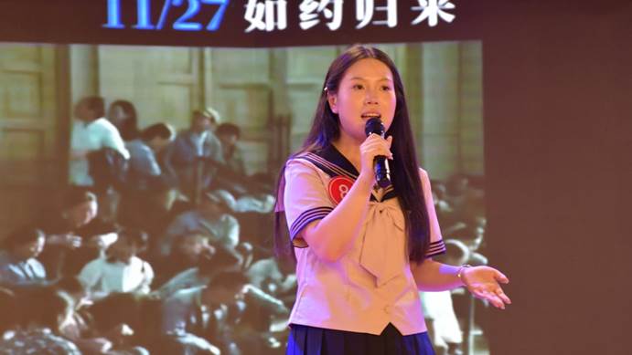 校团委办公室主任卢诗琪为季军韩文一颁奖