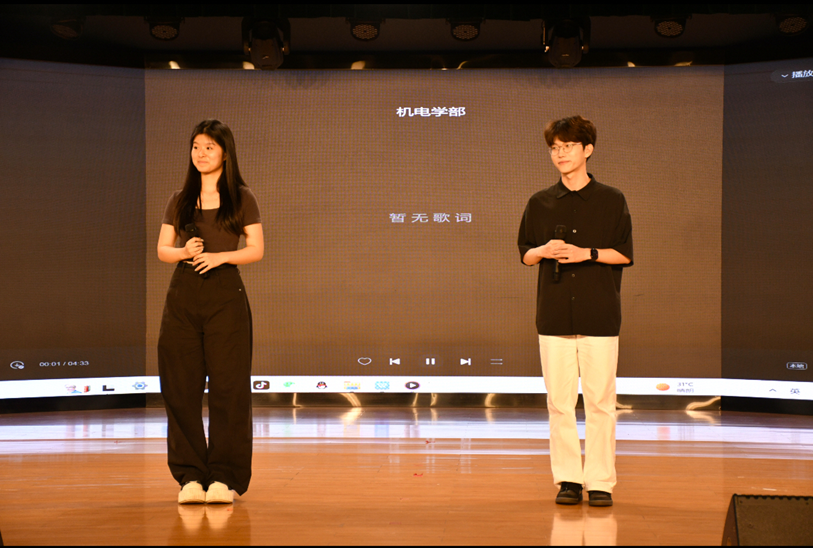 随着述职环节的圆满收官,现场氛围骤然升温,一场充满青春张力的文艺视听盛宴于掌声中璀璨启幕。演出伊始,机电学部齐雨轩、张诗源同学以一首《李白》率先点燃现场气氛。他们清澈而富有感染力的嗓音,将歌曲中洒脱不羁的情怀诠释得淋漓尽致,带领观众仿佛穿越时空,感受诗仙李白的豪迈与浪漫,瞬间拉近了与观众的距离