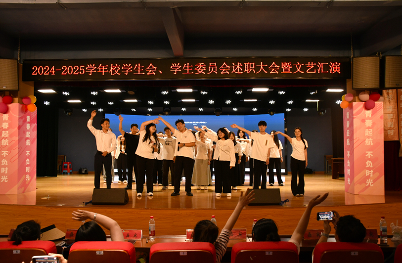 新闻网讯(通讯员:肖可可)2025年6月13日晚17:00,我校2024-2025学年学生委员会述职大会暨文艺汇演在大学生活动中心盛大举行。现场师生济济一堂,共同见证这场凝聚奋斗足迹与青春风采的精彩盛会。