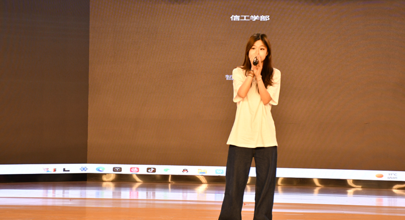 随后,信息工程学部廖安琪带来歌曲《忽而今夏》,她将用灵动的演绎,为我们打开时光宝盒。那里藏着蝉鸣里的青涩心事,跃动着少年迎风奔跑的倔强身影,更封存着青春路上关于成长的蜕变、关于梦想的炽热光芒。
