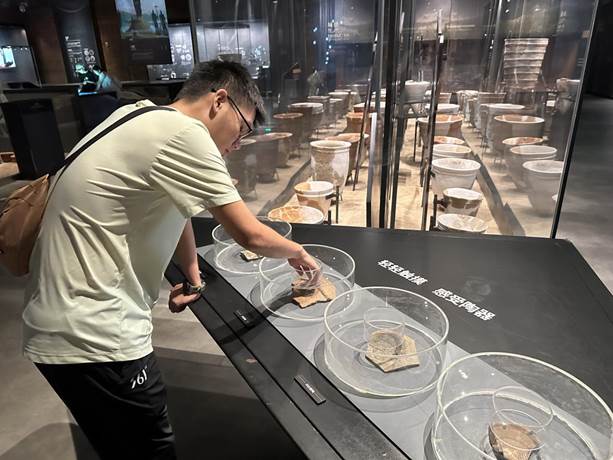 “故邑风物”展厅陈列着大量出土的青铜器、陶器、玉器等文物。这些文物造型精美,工艺精湛,反映了当时高度发达的文明。同学们认真观察每一件文物的细节,感受着古代先民的智慧和创造力,同学们还了解到了这些文物的用途和制作工艺,对商代的社会生活有了更直观的认识。