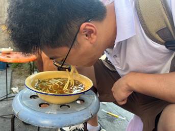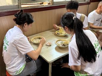 听当地人笑着说 “少了这碗面,清晨就不完整”,成员们才懂最动人的文化从不是书本里的铅字,而是融入日常的烟火气。这份感悟,也让成员们更明晰 “江韵守护者” 的意义:走进街巷、贴近生活,去触摸每一份非遗背后的人情与匠心。这也为实践团接下来深入探寻早堂面的历史渊源、对话传承人,埋下了带着温度的伏笔。三天的时间,几乎让江韵守护者联盟的成员们,从“早堂面新手”变成能和老板聊上几句的“常客”,也让实践团对这碗长江边的美食,有了更细腻的感知。