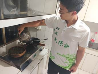 成员们大胆尝试。用砂锅将药材清洗,蒸煮,浓缩,在试验了三四次后,最终找到既不影响传统风味,又能增强养生功效的较好比例。最后团队成员将药汤与早堂面面汤结合,新一代 “养生早堂面”诞生了!它既延续长江味道基因、深度呼应早堂面承载的长江饮食文化底蕴,更以现代健康理念赋予传统美食新价值;不仅让团队的医学专业知识真正落地于文化调研,更在守正创新中为长江流域饮食文化传承注入新动能,让这份百年风味在时代发展中持续焕发活力。