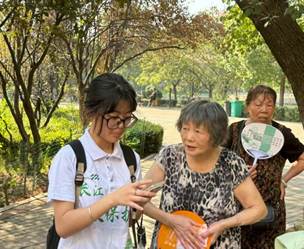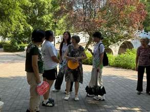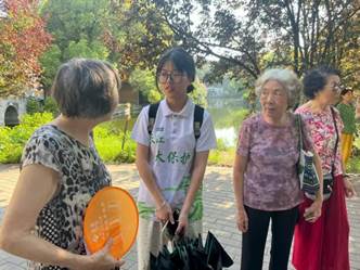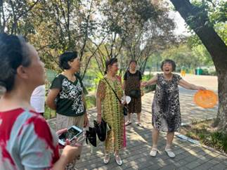 这里曾是繁盛的码头商埠,每一首流传下来的民歌,无论是高亢激昂的传统曲目,还是细腻婉转的民间小调,都是记录先民生活与情感的“活化石”。团队成员通过之前在码头中询问的路人得知,清晨时很多休憩场所里会有很多爱唱歌的老婆婆的身影,于是团队成员来到了荆州沙市区烈士陵园的娱乐场所,寻找那如约而至的悠扬旋律。在这里我们遇到了喜爱唱歌的老婆婆们,于是团队成员便开始了了解她们对民歌的记忆。起初这群老婆婆还有一点拘谨,但是在团队成员的解释下大家慢慢开始敞开心扉的交流。