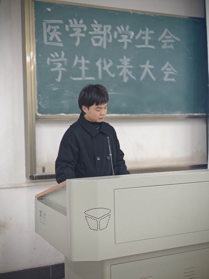 汇报尾声,新任主席向全体代表及医学部学子提出殷切嘱托。他强调,作为新时代医学生,既要以“严谨求实”的态度深耕专业知识,筑牢医学根基;也要以“胸怀天下”的格局担当社会责任,在志愿服务与社会实践中践行“健康所系,性命相托”的誓言,努力成长为有理想、敢担当、能吃苦、肯奋斗的医学人才,为学部发展与医疗卫生事业进步贡献青春力量。