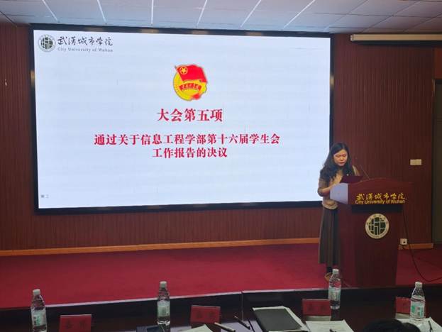 随后,大会选举产生第十七届学生会主席团成员及学生委员会委员,投票流程规范有序。大会审议通过《关于信息工程学部第十六届学生会工作报告的决议》,袁滢珍老师宣读决议,要求新一届学生会成员围绕学部中心工作,引领学生成长、加强自身建设,代表们表决全票通过。