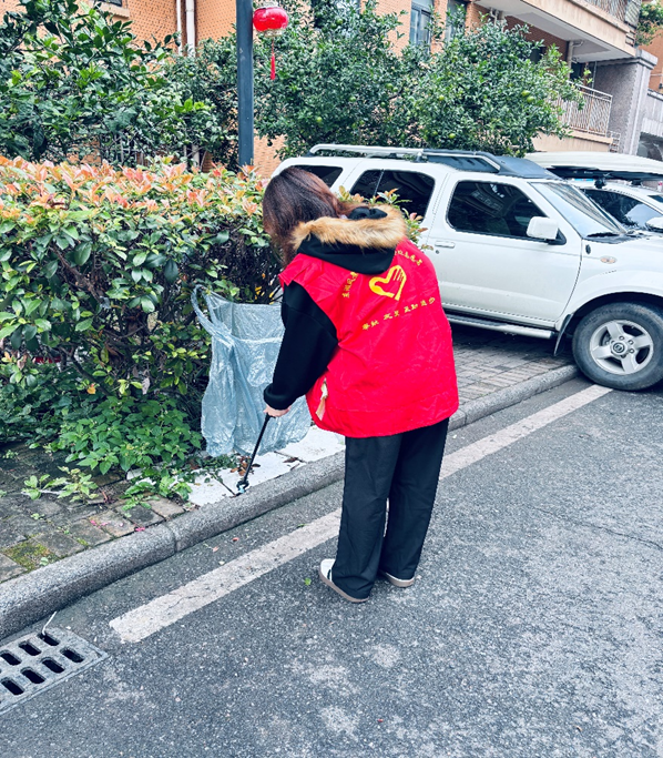 活动当天,志愿者们身着醒目的红色志愿马甲,在社区工作人员的引导下,迅速投入到清洁工作中。他们手持垃圾夹、塑料袋等工具,对社区道路旁、绿化带内的烟头、纸屑、塑料杂物等进行了细致清理。哪怕是藏匿在灌木丛深处的细小垃圾,也被志愿者们耐心找出并妥善收纳。