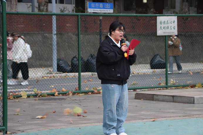 升旗仪式第三项——国家奖学金获得者肖诗婷发言。肖诗婷用“以试错破局,以信念筑梦,用担医者使命”为题,讲述了我们要将个人成长融入医学事业,勇于突破自我,有试错的勇气,跨越医学难关。