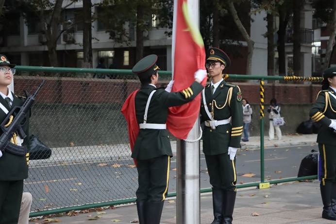 清晨的风裹着凉意掠过操场,国旗与晨光一同舒展扬起,这庄重的画面瞬间抚平了喧嚣。抬眸仰望的刹那,家国情怀在心底悄然升温,寻常的日子也因这抹中国红而滚烫。此刻,升旗仪式第一项——出旗,仪仗队的步伐踏碎了晨雾,信仰正随红旗一同升起。