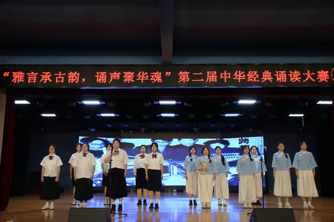 本次班级赛决赛自启动以来,得到各学部积极响应,经过选拔推荐,多支班级队伍脱颖而出晋级决赛。决赛现场,各参赛班级身着整齐服装,以饱满的精神状态投入诵读。他们紧扣经典主题,精心设计编排,将朗诵与音乐、手势等表现形式有机融合,用抑扬顿挫的语调、真挚饱满的情感,诠释着对经典作品的深刻理解。